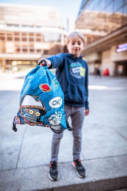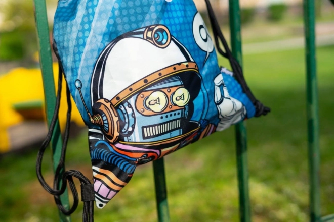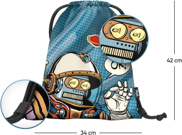 Săculețul pentru papuci BAAGL Spaceman este accesoriul ideal pentru copiii care au nevoie de o soluție practică și stilată pentru transportul obiectelor personale. Fabricat din material textil de calitate, oferă un material foarte rezistent care asigură o durată lungă de viață. Datorită designului unic inspirat din benzi desenate cu robot, acest săculeț este nu doar funcțional, ci și amuzant. Datorită șnururilor rezistente, săculețul poate fi strâns ușor și purtat pe spate ca un rucsac.