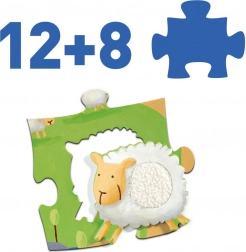- 12 piese principale + 8 piese inserabile cu animale, cu textură