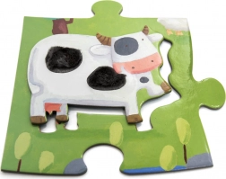 Piesele inserabile cu animale au suprafețe diferite ce imită blana, invitând copiii să descopere prin atingere și consolidând percepția senzorială.