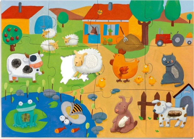 Descoperă distractivele puzzle-uri tactile cu tematică de fermă de la Djeco, care susțin învățarea multisenzorială și dezvoltarea copilului. Piesele mari și rezistente, cu texturi de blană de animale, dezvoltă motricitatea fină, percepția tactilă și, în același timp, îi învață pe copii să recunoască animalele domestice. Cadoul ideal pentru copii de la 3 ani.