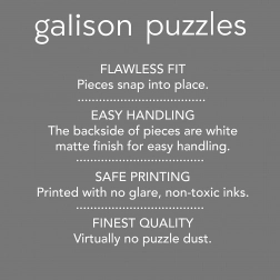 Puzzle-ul este ambalat într-o cutie de carton extrem de rezistentă, realizată din materiale reciclate și surse obținute sustenabil cu certificare FSC®, asigurând nu doar un spațiu de stocare de calitate, ci și respectul pentru mediu.