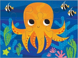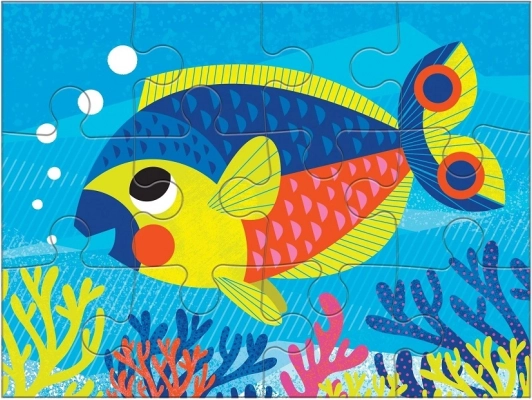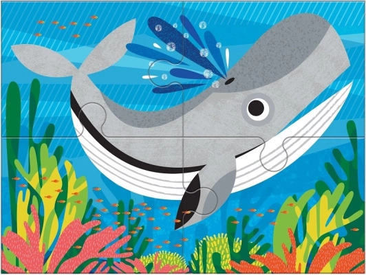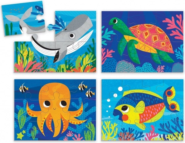 Acest set creativ 4 în 1 include patru puzzle-uri separate cu motive simpatice din lumea subacvatică – balenă, țestoasă, caracatiță și peștișor. Piesele sunt realizate din carton reciclat, cu finisaj mat pentru culori fidele și o atingere plăcută. Fiecare puzzle are un număr diferit de piese (4, 6, 9, 12), astfel încât copiii pot avansa pas cu pas și își pot dezvolta motricitatea fină, răbdarea și gândirea logică.