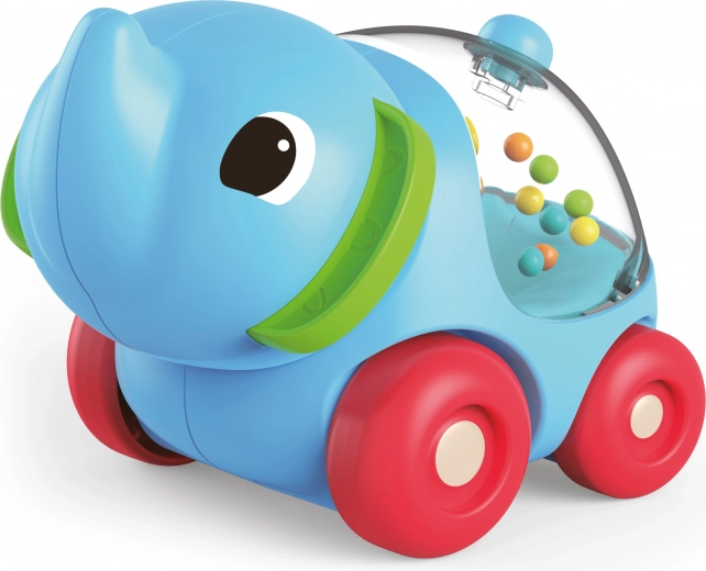 Această zornăitoare colorată, elefănțel pe roți, este primul vehicul ideal pentru bebeluși. La mișcare produce un sunet de zornăit, care îi motivează pe copii să exploreze, să se târască și să împingă pentru prima dată jucăria în fața lor.