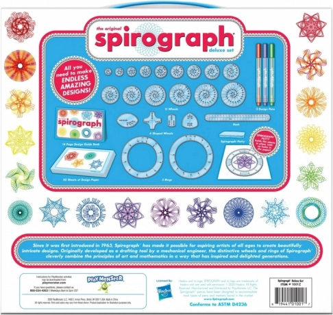 Din 1965, de când a fost prezentat Spirograph, le permite artiștilor începători de toate vârstele să creeze modele unice și complexe. Cercurile și circumferințele, concepute inițial ca instrument pentru ingineri, îmbină ingenios principiile artei și ale matematicii, dând naștere unor designuri unice. Spirograph inspiră și încântă de mulți ani, iar acum apare într-o versiune nouă și revigorată și în Polonia!