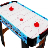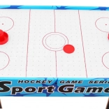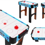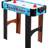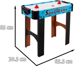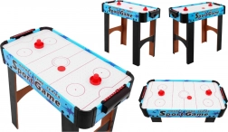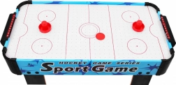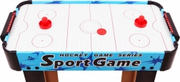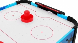 Bucurați-vă de distracție dinamică cu air hockey-ul de masă compact. Suprafața de joc cu orificii și fluxul de aer creează o pernă pe care pucul alunecă lin, fără frecare. Doi jucători se înfruntă față în față și, folosind paletele ("grzybków"), încearcă să trimită pucul în poarta adversarului.