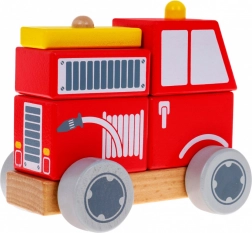 Construiți propriul autovehicul de pompieri din setul de cuburi din lemn. Copilul fixează piesele pe cei doi știfturi de pe bază și creează un puzzle simplu care susține coordonarea mână–ochi, răbdarea și gândirea logică. Lemnul finisat fin și culorile rezistente sunt prietenoase cu mâinile copiilor și cu mediul.