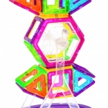 Include pătrate colorate, triunghiuri și hexagoane pentru construcții diverse.