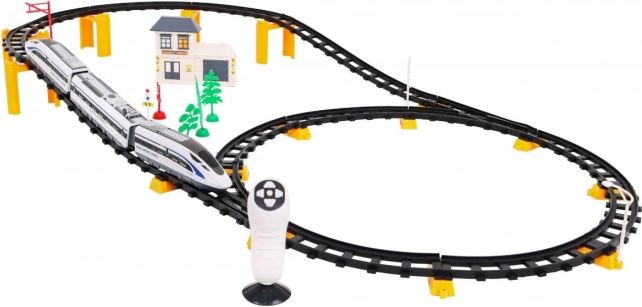 Acest set uimitor conține 52 de piese cu o lungime totală a traseului de 396 cm. Trenulețul este controlat de o telecomandă care permite mișcarea înainte și înapoi. Șinele au un sistem simplu și sigur de conectare, garantând siguranță și durabilitate. Trenulețul și vagoanele sunt fabricate din plastic de calitate pentru a asigura o durată lungă de viață.