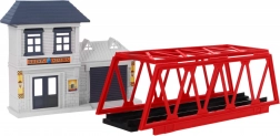 Setul include locomotive, vagoane, stație de cale ferată, pod și elemente decorative precum copaci sau indicatoare rutiere. Această jucărie oferă o experiență interactivă și creativă pentru copii și părinți.