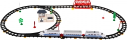 Conține tot ce este necesar pentru a crea propria cale ferată, inclusiv locomotive, stații și elemente decorative.