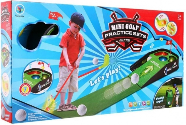Acest set de mini golf conține tot ce aveți nevoie pentru a juca golf oricând și oriunde. Datorită efectelor de lumină și sunet, oferă o experiență unică, care atrage atât jucătorii mici cât și mari.