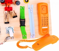 Tabloul conține diverse componente de joc precum spinner, telefon și clopoțel. Aceste elemente transformă învățarea într-un joc pe care copiii îl vor adora.