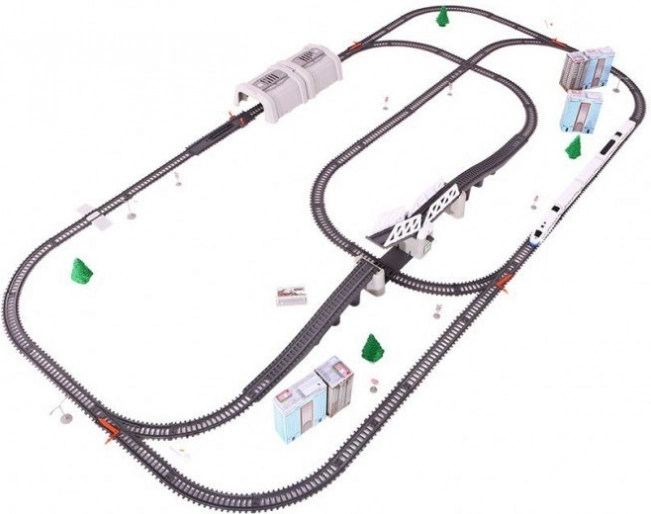 Setul include trasee cu intersecții, care permit simularea realistă a deplasării trenului.