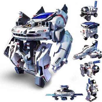 | Vehicule solare - set 6 în 1 - este o jucărie educativă de asamblat, alimentată de lumina solară. Pentru asamblarea setului nu aveți nevoie de lipici sau unelte. Componentele individuale se îmbină prin clipsare. Setul solar este o jucărie excelentă pentru toți copiii curioși. permite petrecerea creativă a timpului și, în plus, îi învață avantajele energiei solare. Mai întâi trebuie asamblat modulul panoului solar și motorul. Celelalte componente pot fi adaptate în funcție de construcția pe care o realizați în acel moment. Setul include o microbaterie și un container suplimentar pentru baterii de tip AAA (în container încap 2 baterii). Cu microbateria putem încărca vehiculul în 3 minute pentru aproximativ 50-60 de secunde de utilizare într-un spațiu neiluminat. Prin înlocuirea modulului de microbaterie cu containerul pentru 2x baterii AAA putem folosi vehiculul fără a fi nevoie de expunere la razele solare, astfel încât în zilele înnorate copilul se poate juca în continuare foarte bine cu această jucărie. Setul le permite copiilor să învețe prin joc; este o formă naturală de cunoaștere a lumii, cea mai plăcută și ușor de însușit pentru copii, iar creativitatea trezită în ei va da roade pentru viitorul lor. Setul le permite copiilor să învețe prin joc; este o formă naturală de cunoaștere a lumii, cea mai plăcută și ușor de însușit pentru copii, iar creativitatea trezită în ei va da roade pentru viitorul lor. Dimensiunile aproximative ale cutiei: 24 x 18 x 7 cm. | ||