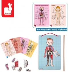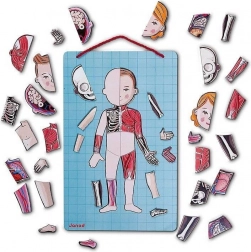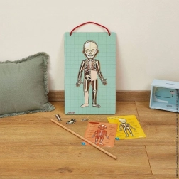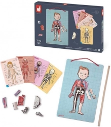 Puzzle-ul magnetic al corpului uman de la JANOD este o jucărie educativă ingenioasă, care le arată copiilor, în mod clar, straturile corpului – de la schelet la mușchi, organe și aspectul exterior. Datorită cardurilor intuitive în 11 limbi, copiii își îmbogățesc vocabularul și înțeleg ușor cum funcționează corpul uman. Învățarea este intuitivă, distractivă și susține gândirea logică.