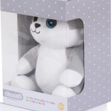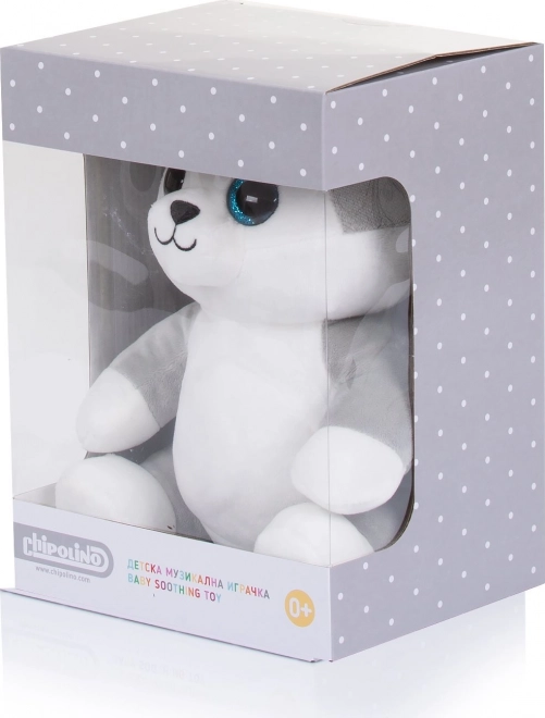 Liniștește bebelușul cu melodii delicate și lumină colorată – adorabilul husky de pluș CHIPOLINO oferă lampă de noapte în burtică, 3 cântece de leagăn și material foarte moale pentru confort maxim. Datorită benzilor cu arici, îl fixezi ușor de pătuț, cărucior sau leagăn.