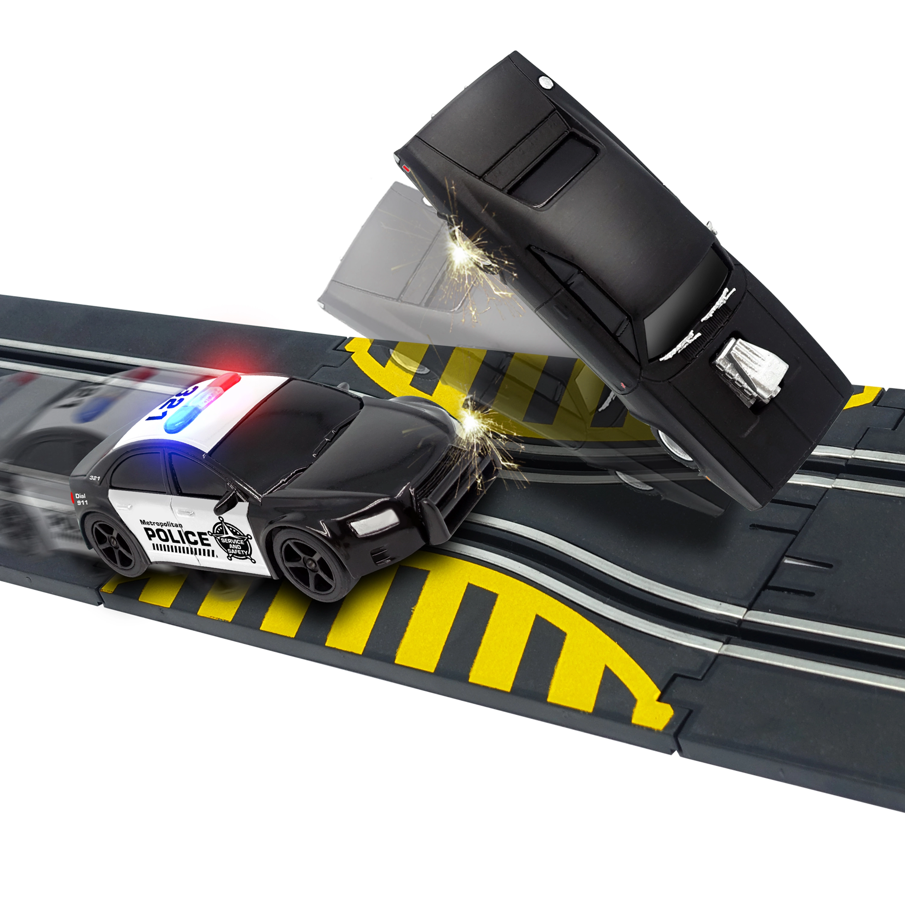 Pistă de curse 1:43 cu 2 mașinuțe Top Turbo cu lumini, lungime 7,6 m