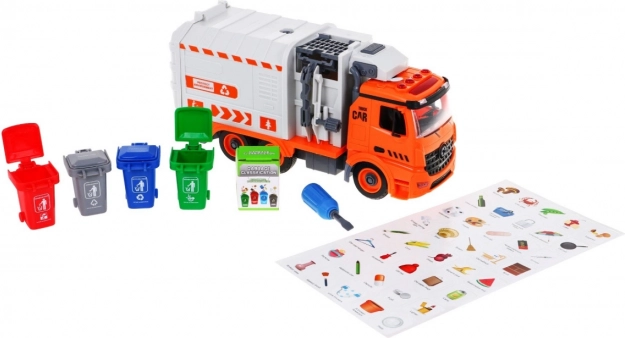 Descoperiți o jucărie realistă care învață sustenabilitatea într-un mod distractiv. Mașina de gunoi cu braț mecanic lateral pentru ridicarea containerelor, capac spate rabatabil și efecte luminoase și sonore oferă ore întregi de joc creativ. Copiii își exersează motricitatea fină datorită posibilității de a desface și reasambla vehiculul folosind șurubelnița inclusă cu biți interschimbabili.