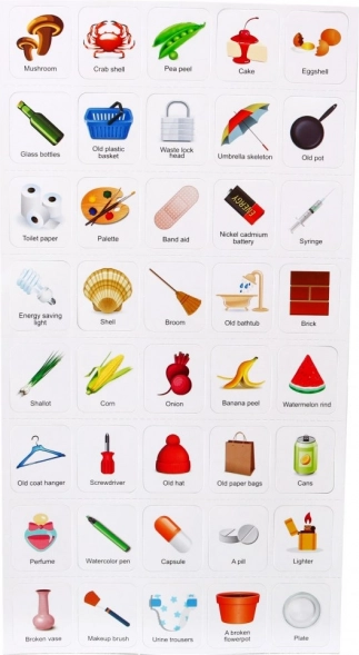 Setul include o broșură cu carduri ilustrate care explică sortarea corectă a deșeurilor: verde – deșeuri de bucătărie/bio, albastru – deșeuri reciclabile, gri – deșeuri menajere, roșu – deșeuri periculoase. Astfel, copiii își însușesc natural obiceiuri ecologice și responsabilitatea față de mediu.