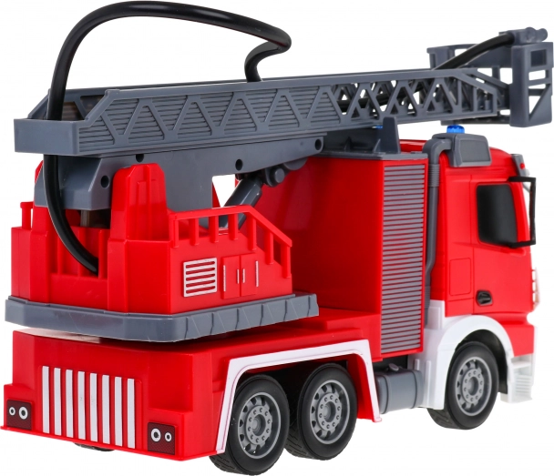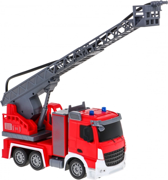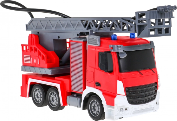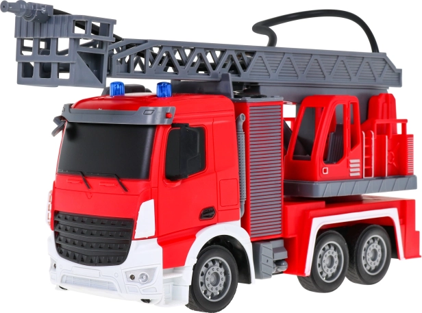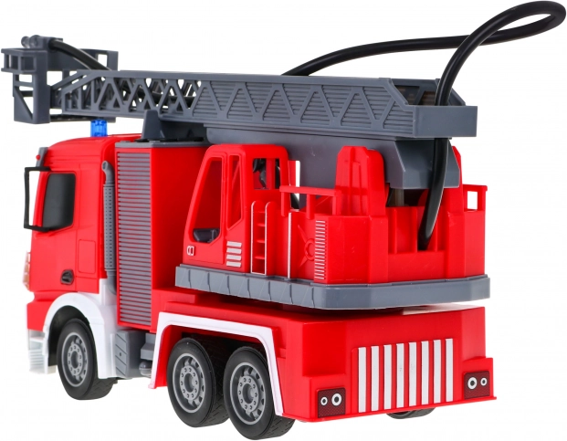 | | Mașină de pompieri interactivă mare, cu scară mobilă și rotativă, furtun de apă și numeroase funcții, destinată copiilor de la 3 ani. Vehiculul se controlează cu o telecomandă pe frecvența de 2,4 GHz. Merge înainte și înapoi și virează la dreapta și la stânga. Are anvelope din cauciuc și oglinzi din cauciuc. Jucăria are funcție sonoră – sunetul ridicării și extinderii scării de pompieri – și funcție luminoasă – faruri frontale și lumini intermitente pe partea superioară a vehiculului la ridicarea și coborârea brațului. Scara de pompieri poate fi extinsă, ridicată și coborâtă și rotită la 180 de grade. Vehiculul este echipat cu un furtun de apă din care țâșnește apă! Jucăria este alimentată de un acumulator de 500 mAh 3,7 V (inclus în pachet), iar telecomanda de 2 baterii AA 1,5 V (neincluse). Funcțiile mașinii de pompieri: - scară 1:12, - deplasare înainte și înapoi și virare la dreapta și la stânga, - roți din cauciuc, - oglinzi din cauciuc, - tracțiune pe puntea spate, - direcție reglabilă, - ridicarea, coborârea și extinderea scării de pompieri, - rotirea scării la 180 de grade, - furtun cu umplere cu apă, - faruri frontale, - lumini intermitente pe partea superioară a vehiculului la coborârea și ridicarea scării, - sunete de ridicare și coborâre a scării. |