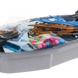 - navă cu lansatoare, - 10 x navă albastră, - 10 x navă maro, - 30 x bile multicolore. |