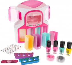 Setul pentru vopsirea unghiilor este o distracție grozavă pentru micii pasionați de modă. Conține un uscător interactiv pentru unghii, care este alimentat de 3 baterii AA și oferă un efect de uscare realist împreună cu suflare ușoară de aer și un led luminos. Compartimentele speciale din uscător permit depozitarea lacurilor și a accesoriilor direct în corpul său. Lacurile sunt fabricate din materiale nontoxice și pot fi ușor spălate cu apă caldă.
