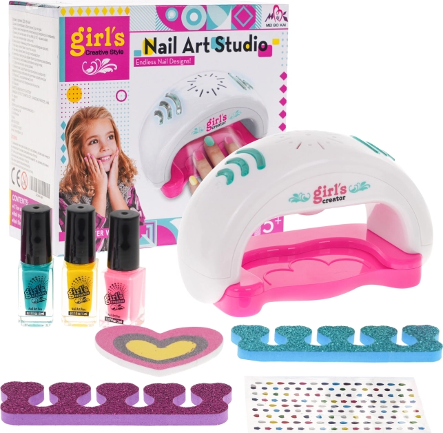 Acest set de unghii aduce micuților entuziaști o lume de fantezie și distracție direct în camera lor. Uscătorul de unghii usucă eficient unghiile și emite sunete realiste de uscare, în timp ce partea superioară luminează ușor. Toate lacurile de unghii sunt sigure și netoxice, ușor de îndepărtat, permițând un divertisment nesfârșit fără griji.