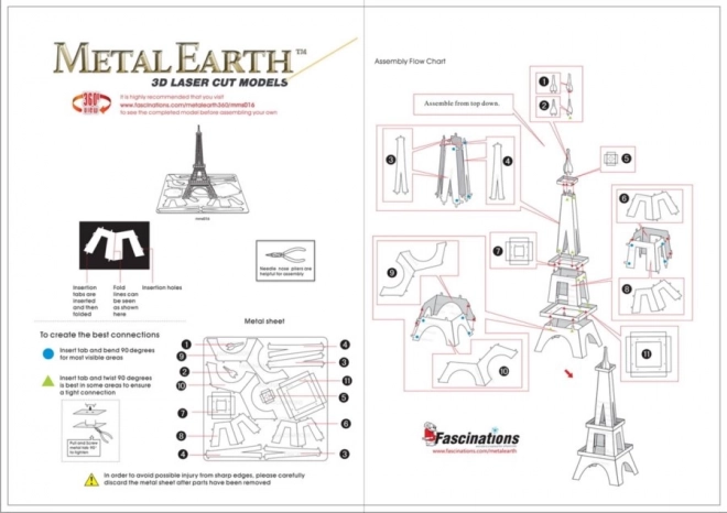 Scoateți piesele din plăcuțele metalice, dacă este necesar folosiți o clește tăietor mic (nu este inclus). Piesele se îmbină între ele cu ajutorul unor încuietori formate dintr-un cârlig (cioc) și o gaură. Îndoiți cârligul cu ajutorul unei clești subțiri mici (nu este inclus) și îmbinați treptat toate încuietorile până când obțineți o piesă de rezistență foarte realistă!