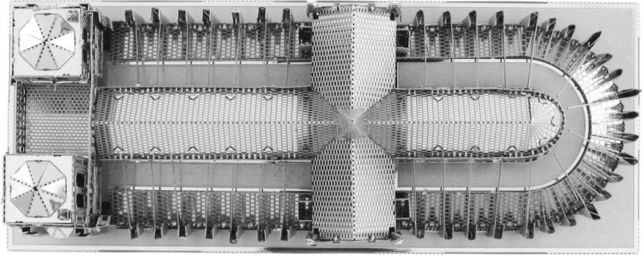 Scoateți piesele din plăcuțele metalice; dacă este necesar, folosiți cleștișori tăietori mici (neincluși). Piesele se îmbină prin sisteme de prindere formate din cârlig (limbă) și orificiu. Îndoiți cârligul cu ajutorul unor clești subțiri mici (neincluși) și îmbinați pe rând toate prinderile până obțineți o piesă de mare realism!