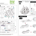 Scoateți piesele individuale din foile metalice; la nevoie folosiți un clește tăietor mic (neinclus). Piesele se îmbină între ele prin încuietori formate dintr-un cârlig (cioc) și o fantă. Îndoiți cârligul cu ajutorul unor clești subțiri mici (neincluși) și îmbinați treptat toate încuietorile până când obțineți o piesă de maestru foarte realistă!