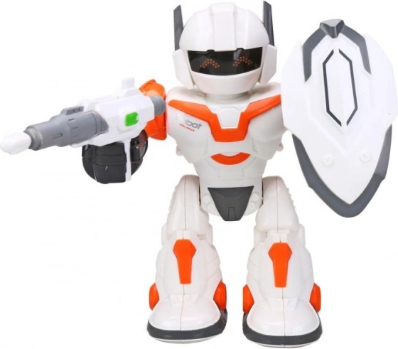 Pentru și mai multă aventură, robotul este echipat cu armă și scut, care stimulează imaginația și jocul de rol. Combinația dintre designul portocaliu accentuat și efecte îl transformă într-o jucărie atrăgătoare și un cadou grozav.