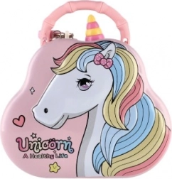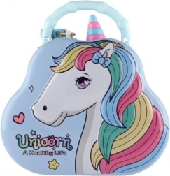 Cauți un cadou drăguț și practic pentru copii? Pușculița din tablă – poșetă cu unicorn este alegerea ideală. Cei mici își pot păstra în siguranță primele economii datorită capacului cu lacăt, în timp ce fantă superioară pentru monede ușurează economisirea zilnică.
