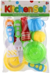 Acest set colorat de veselă pentru copii oferă tot ce este necesar pentru gătit și servire distractivă. Datorită accesoriilor realiste, micii bucătari învață bazele mesei și ale activităților din bucătărie, dezvoltând totodată motricitatea fină, comunicarea și imaginația.