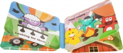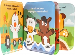 Transformați momentele de zi cu zi în povești fermecate de la fermă. Setul conține cinci marionete drăgălașe pentru degete și o cărticică moale, cu texte în limba engleză și o piuitoare în colțul din dreapta jos al copertei. Datorită execuției rezistente la apă, este potrivită și pentru baie – povestea poate continua și la băiță.