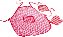 Setul include un șorț de bucătar în carouri, o mănușă termică și un suport pentru ustensile, astfel încât micii bucătari să aibă totul la îndemână și să poată începe să servească și să amestece imediat după despachetare.