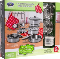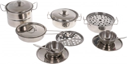 Oala, oala mare, tigaia și capacele din metal sună și arată ca cele reale. Astfel, copiii își exersează abilitățile și învață obiceiuri sigure în „gătit”. Curățarea ușoară și rezistența ridicată asigură distracție de durată.
