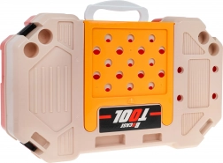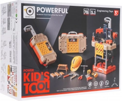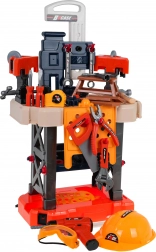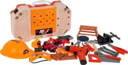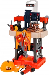 Setul include o gamă largă de unelte din plastic (fierăstrău, ciocan, clește, șurubelnițe, chei), menghină, roți dințate, elemente de îmbinare și echipament de protecție (ochelari, cască). Copiii exersează în siguranță motricitatea fină, coordonarea mână‑ochi și gândirea logică, bucurându‑se de munci de atelier de joc de rol.
