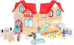 Setul include un bogat pachet de accesorii: mobilier pentru living, dormitor și bucătărie, decorațiuni, mașină cu roți mobile și trei figurine (mamă, tată, copil). Datorită deschiderii ușoare și ușilor care se deschid, joaca este clară și confortabilă.