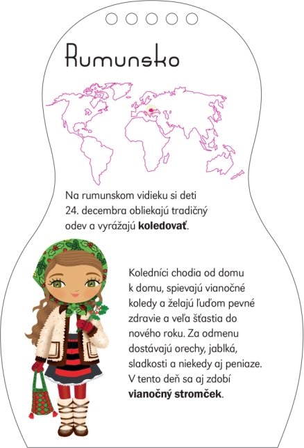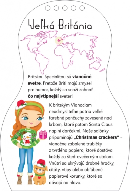 O cărticică creativă pentru copii care aduce desene de colorat de Crăciun, o mulțime de autocolante și inspirație din diferite colțuri ale lumii. Micii cititori vor afla cum se sărbătorește Crăciunul în Marea Britanie, Norvegia, Franța, România și Rusia și își vor crea nenumărate ținuturi de Crăciun. Ca bonus, nu lipsește un frumos brățar pentru noroc.
