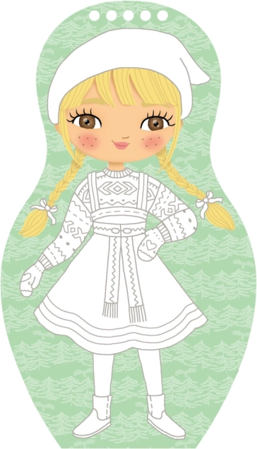 Acest titlu din seria îndrăgită le prezintă copiilor ținute și obiceiuri de Crăciun, tradiționale și moderne, din diverse țări. Datorită desenelor de colorat și autocolantelor, își pot crea propriile combinații stilate și, în același timp, pot descoperi lumea într-un mod distractiv.