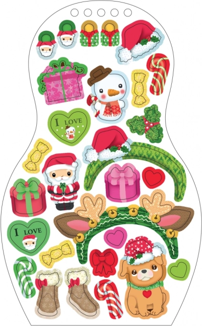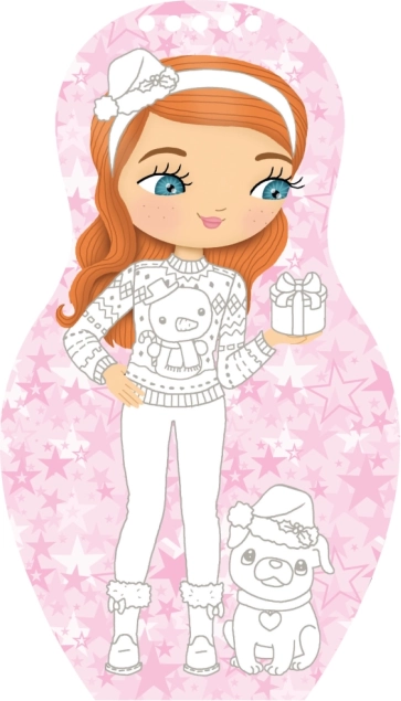 - Desene de colorat și autocolante: combinați, colorați și creați propriile ținute de Crăciun.