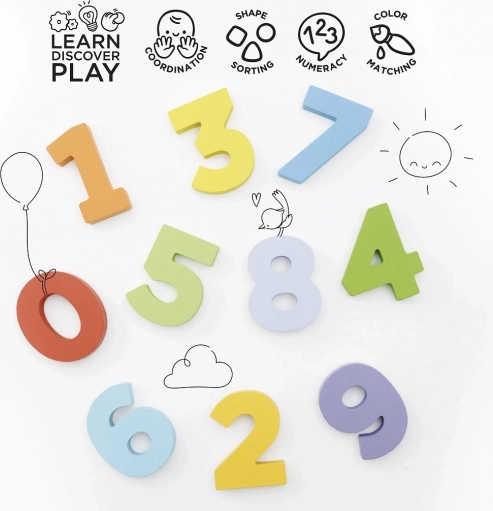 Acest puzzle din lemn cu piese de inserție sprijină învățarea timpurie și dezvoltă relația cu numerele de la vârste fragede. Copilul așază cifrele robuste la locurile potrivite, ghidându-se după formă sau numărând punctele de pe bază. Învățarea prin joacă dezvoltă natural motricitatea fină, coordonarea mână–ochi și gândirea logică.