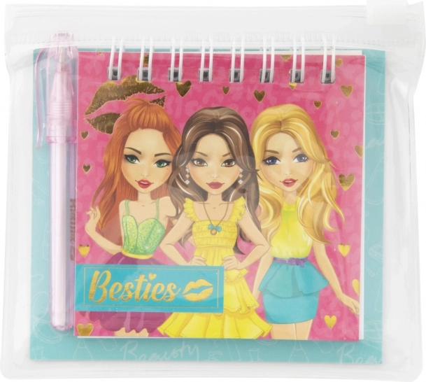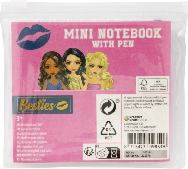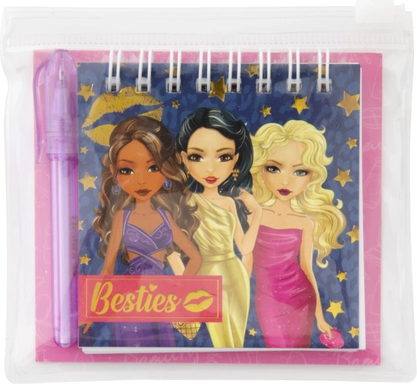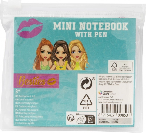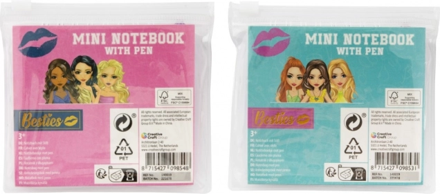 Acest mini carnețel este perfect pentru toți micii scriitori și iubitorii de desen. Cu motivele Besties copiii vor fi încântați să-și noteze gândurile sau să deseneze propriile imagini. Datorită dimensiunii compacte de 8x8 cm și husei transparente care protejează blocul și creionul, se potrivește ușor în rucsac sau ghiozdan.