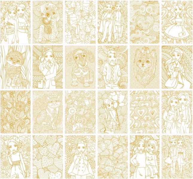Descoperiți bucuria de a colora cu setul nostru de colorat Luxury Besties A4, care oferă 24 de imagini superbe de decorat.