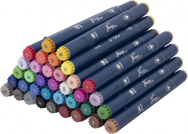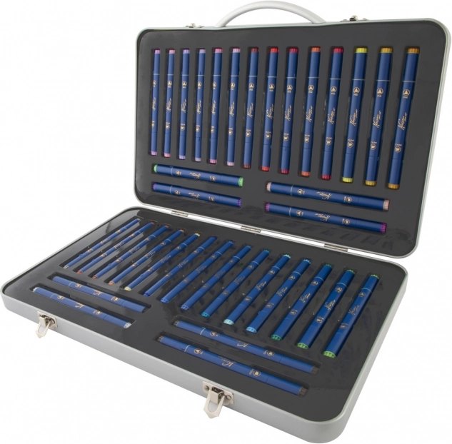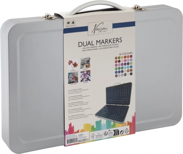 Acest set universal de markere cu două capete este o alegere excelentă pentru ilustrație, schițare și lettering. Fiecare marker oferă două capete pentru stiluri diferite de linie, astfel încât poți trece ușor de la trăsături detaliate la acoperirea suprafețelor. Servieta metalică protejează conținutul, menține ordinea și facilitează transportul.