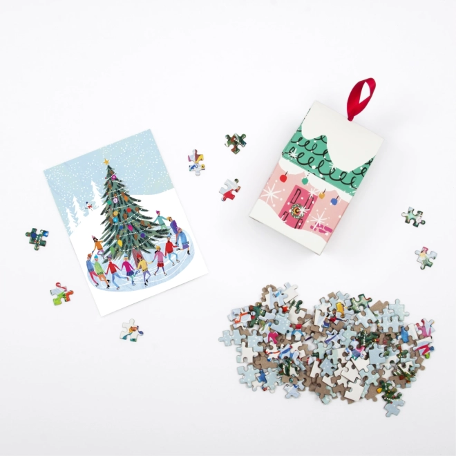 Descoperiți atmosfera sărbătorească cu mini puzzle-ul GALISON cu motiv de patinaj în jurul bradului de Crăciun. Datorită celor 130 de piese, îl veți asambla în scurt timp, bucurându-vă în același timp de o provocare plăcută și de relaxare. O alegere perfectă pentru serile de iarnă și ca un cadou elegant.