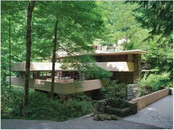 Puzzle-ul are pe o parte motivul uneia dintre cele mai faimoase case – casa cu cascadă, Fallingwater, iar pe cealaltă partea planul de construcție al acestei clădiri. Piesele au două finisaje de suprafață – lucios și mat. Datorită acestui lucru, diferențierea motivelor este mai ușoară. Dimensiunea puzzle-ului asamblat este de aproximativ 61 x 46 cm