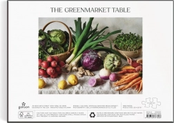 Bucurați-vă de o asamblare provocatoare, dar delicioasă cu puzzle-ul GALISON Greenmarket Table cu 1500 de piese. Tipărire premium cu cerneluri sigure, finisaj mat pentru culori și detalii fidele și cutie rezistentă pentru utilizări repetate. Fabricat din hârtie reciclată cu accent pe sustenabilitate. Ilustrație de Bella Karragiannidis.