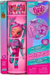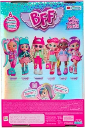 Păpușa BFF Bruny vine într-o ținută la modă și cu multe accesorii pentru styling creativ. Datorită părului lung, strălucitor și membrelor complet mobile, este excelentă pentru joacă imaginativă, fotografii și expunere. Accesorii precum geanta în formă de inimă, pantofii, șosetele și colierul completează orice look.