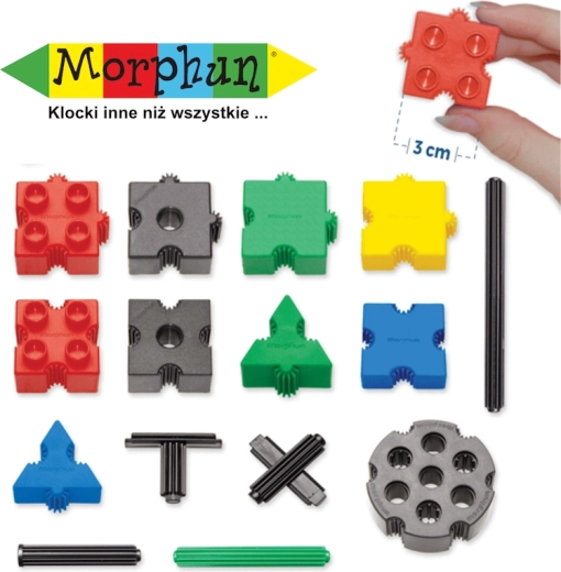 Piesele Morphun pot fi conectate nu numai de sus, ci și lateral, similar unui puzzle, ceea ce extinde considerabil posibilitățile de distracție și dezvoltă abilități motorii și cognitive la copii.